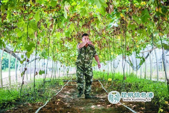 8月上旬,中越边境河口县,气温高达36度。红河州河口县南溪公安边防派出所上士马开福把迷彩服的袖子卷得老高,每隔不到一分钟,就得用手背擦去额头上的汗珠,可领口和后背还是被汗水浸湿了大片。当时,他正站在一个挂满丝瓜、开满黄花的蔬菜大棚里查看丝瓜的长势。在他身后,一排排的蔬菜大棚延伸出近千米远。