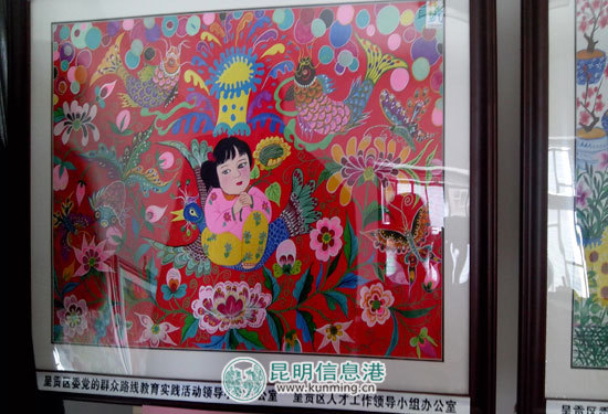 昆明信息港讯 记者邹美连 杨炎 作为呈贡第二届万溪宝珠梨采摘节活动之一,万溪冲游客服务中心展出了大量书画作品,包括《花香追梦·呈贡农民画展》、《生态宜居·呈贡低碳建设展》等。