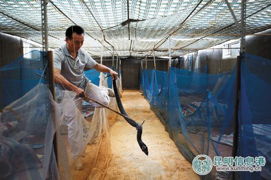 在很多人看来,蛇类是一种令人生畏的冷血爬虫。殊不知,蛇类全身都是宝,昆明的一些商家看准了商机,纷纷投入养蛇者的行列。然而,养蛇并非易事,其严格的审批流程及饲养技术让不少人望而却步。目前,昆明市林业局发证许可的蛇类人工养殖和经营利用单位仅有两家。