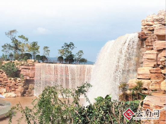牛栏江水滚滚而来,形成瀑布。