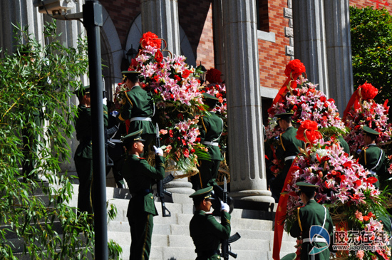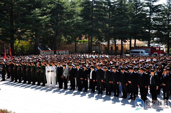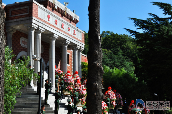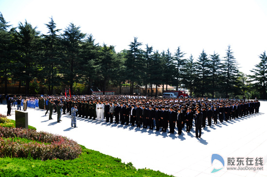 9月30日10时,烟台在位于栖霞英灵山的胶东革命烈士陵园纪念广场举行隆重的公祭烈士活动,社会各界约1000人参与仪式,并瞻仰了烈士纪念堂。(英其岭/摄)