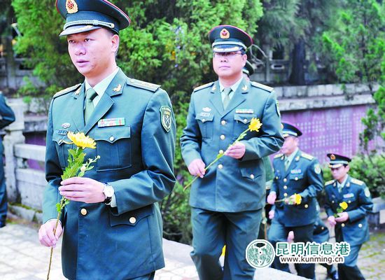 通过默哀、献花等方式祭奠革命先烈、缅怀烈士功绩、传承革命精神。小号吹响《思念曲》,身着橄榄绿的官兵们站在王德三、吴澄、马登云三位烈士墓前默哀。“无数革命先烈在枪林弹雨中浴血奋战,用殷红的鲜血和宝贵的生命谱写了可歌可泣的篇章,永远值得我们铭记缅怀。”昆明警备区政治部主任陈根献对参加公祭活动的官兵们说。而参加活动的官兵们也表示,将继续践行当代军人核心价值观,培养爱国主义、集体主义精神和社会主义道德风尚。同时也将继续在坚定理想信念、培育战斗精神、提高实战能力上下功夫,为实现中国梦强军梦而努力奋斗。(昆明日报 记者李双双)