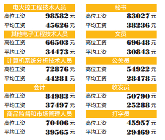 餐厅服务人员、社会服务业、批发零售业,是今年需求最大的岗位,这些岗位的需求与求职比达到3:1以上。虽然这些岗位中,高位工资有的达到每年6.6万元,但受平均工资偏低及并不乐观的职业前景等原因影响,还是难以吸引求职者。同比发现,文员、打字员、幼儿教师等岗位,年平均工资也相对较低。
