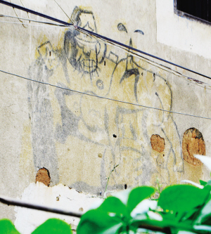 这幅漫画画于南靖县梅林镇梅林村旧圩后街一座房屋后墙上,面积约3平方米。