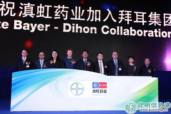 昆明信息港讯 记者尹吉 2014年11月17日,合以致胜——滇虹药业加入拜耳集团庆典仪式在昆明洲际酒店举行。拜耳公司在支付收购价格36亿元人民币后,完成了对滇虹药业集团公司所有股份的收购。