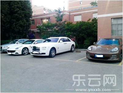 “快照,快照,300 万一辆的法拉利啊!洒家这辈子买不起,看一眼也是值了。”日前,10 多个学生正围在一辆停放在云南财经大学国际工商学院的一辆法拉利加利佛尼亚周围用手机纷纷拍照。据介绍,不仅仅是这辆 300 万元的法拉利,最低价 86.6 万元一辆的保时捷卡宴,低配 76 万左右的宝马 X6,均价 160 万左右的奔驰 S500 等豪车,都曾陆续出现在国际工商学院教学楼四周。甚至还有人经常看到一辆价值 1200 万的迈巴赫经常现身学校。“教学楼外就是个车展”,这让每日还奋战在公交车一线的上班族们情何以堪!