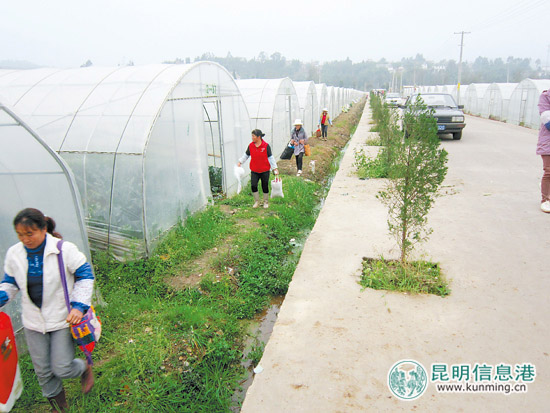 马街万亩连片蔬菜基地的面积、规模和品质,在昆明各县区里都算得上名列前茅。马街镇的工作人员姚靖告诉记者,蔬菜基地靠近贾龙河、芹菜河和丁所河,通过抽调提引,充分保证了灌溉用水,加上大量采用喷灌技术,新鲜蔬菜长势喜人,实现了丰收。万亩蔬菜基地是市政府新一轮菜篮子工程建设的第一期项目,拥有省级无公害蔬菜生产基地的资质。目前,青美、汉源和广西泽丰等公司及种植大户88家纷纷承包土地,投资、投产、达效,推动了蔬菜种植的现代化、产业化发展。据当地政府和菜农介绍,万亩蔬菜基地的蔬菜大部分供应昆明市场,只有青美公司的销往新加坡等国家。随着产业结构的不断调整,蔬菜种植已经成为老百姓增收的重要途径。区域化种植和产业组织化管理程度不断加强,产品优势日趋明显,市场份额逐年扩大,经济效益更是日益显著,产业化生产的格局已初具雏形。