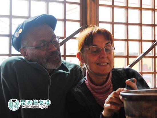 昆明,对哈桑和派翠西亚而言,虽然因他们的儿子米曼而结缘,但来到这里,他们尝试在这里找到自己喜爱的生活。“哈桑还计划在昆明开个艺术创作工作室呢,”派翠西亚介绍。对此,哈桑,不置可否,他说:“来昆明陪儿子是我们的选择,但儿子平时忙也没有太多时间整天陪伴我们。建个属于自己的工作室,更方便平时创作吧。”昆明留下了哈桑和派翠西亚停留的脚印,哈桑和派翠西亚也给昆明吹来了一股艺术创作的新风。(昆明信息港 记者陈盈盈)
