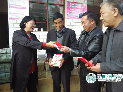 昆明信息港讯 记者王鹏 近日,昆明市委党史研究室主持工作副主任张丽仙,有关处室同志到禄劝县九龙镇撒布开村益里小学“四群”工作点开展助学送温暖活动,为在校的87名学生,送去了书包、《新华字典》、课本、文具盒等价值1.2万元的学习用品。