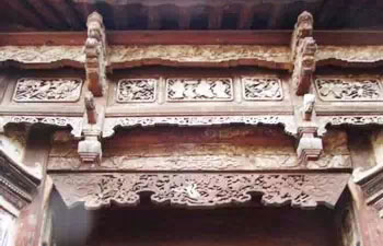 小户人家也善用木雕对门窗进行装饰。最常见的就是格子门。格子门的格扇由上部的格网、中间的中绦环板,下方的裙板等组成。格网虽然主要是采光作用,但是木棱之间定要有一些雕刻装饰。中绦环板和裙板往往并不镂空,更成为雕刻装饰的集中地。格子门的雕刻多为浮雕,题材主要以四季花鸟、渔樵耕读等为主。