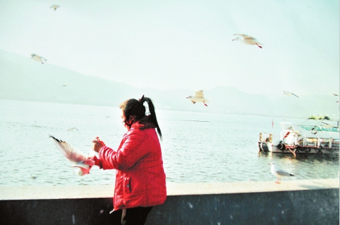 周女士说,这是她第一次见到海鸥,就想抓来喂它点东西,抓了一下,就放了。认识到抓鸥不应该后,她眼里噙着泪水说:“我错了!以后不会再抓了。”