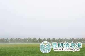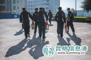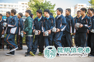 12月23日早上,楚雄天人中学操场上大雾弥漫,来自缅北地区的143名留学生和中国的学生同坐在操场上等待开班仪式的进行 本组图片都市时报记者 杨帆/摄