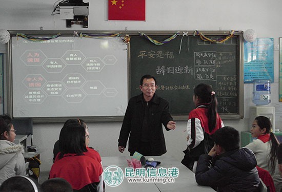 昆明信息港讯 记者刘佳妮 通讯员李晶箐 1月5日下午,昆明滇池旅游度假区实验学校全体师生开展了一次以“平安是福·辞旧迎新”为主题的校园安全敲警钟班会活动。活动包括有元旦期间安全事件回放、明通小学9.26踩踏事件”警示等视频播放,及活动教案、课件等资料发放。