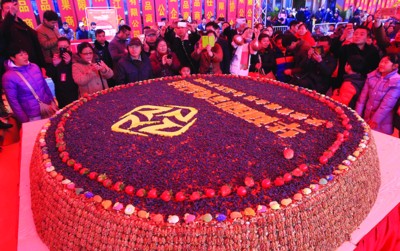 2015.8斤!世界最大切糕惊现合肥,切糕体型重量创世界纪录,吸引了数千名市民来到现场围观、品尝。