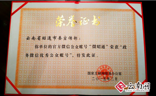 云南两个微信公众号获“全国政务微信优秀公众帐号”