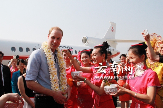 3月4日上午11点左右,威廉王子乘坐的专机降落在云南西双版纳嘎洒机场,英国王子的“云南时间”正式启动。