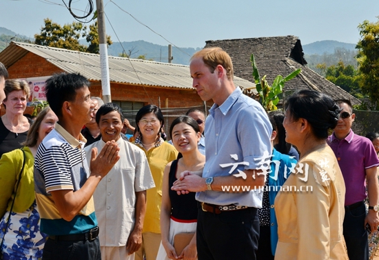 威廉王子走进傣族村寨,与村民交谈。记者赵汝碧/摄