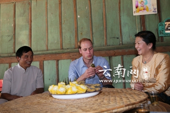坐在傣家的篾桌旁,威廉王子品尝了茶和粽子,并与岩扁夫妇、村长等聊起了“家常”,“家里的经济收入有多少?生活情况如何?”当然威廉王子还问到了自己一直关注的大象保护的问题,“你们这里能见到大象吗?大象进村了怎么办?大象损坏庄稼了怎么办?”