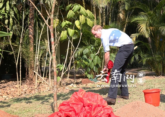 热带植物园,威廉王子种下一棵五桠果树。记者黄兴能/摄