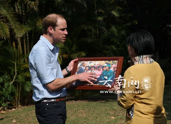 植物园中,威廉王子得到了一份特殊的礼物,祖父祖母29年前访问云南时的照片。记者黄兴能/摄