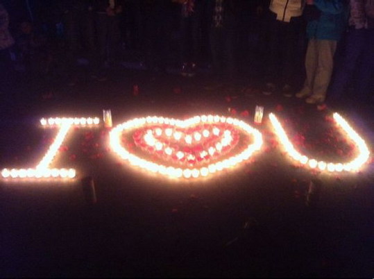 女友因异地恋提分手 痴情男摆520支蜡烛求挽回