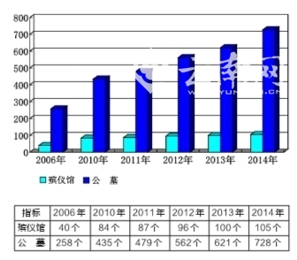 “十二五”期间,省级共投入资金2.8亿元,用于资助殡仪馆的新建、改扩建和农村公益性公墓建设,共计新建37个殡仪馆,对31个老旧殡仪馆进行搬迁和改扩建,支持38个殡仪馆购置设施设备,新建农村公益性公墓228个。截至目前,全省共建有殡仪馆105个、经营性公墓71个、农村公益性公墓657个,基本形成了布局合理、设施完善、功能齐全、服务便捷的殡葬公共服务网络。同时,积极推行绿色殡葬,大力宣传和推广不占或少占耕地的生态葬法,目前,全省大部分公墓都开发了树葬、鲜花葬、草坪葬、壁葬、塔葬等生态墓位,绿色生态墓穴占墓穴总数的19.2%。
