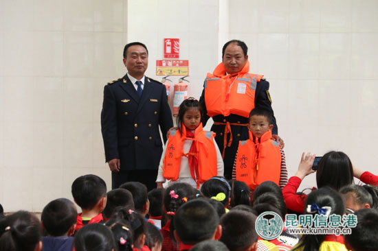 昆明信息港讯 记者张钊 4月3日,昆明市地方海事局在呈贡中华小学开展了2015年水上交通安全知识教育进校园活动,此次活动的主要目的是给小学生普及水上交通安全知识,增强安全意识,提高防范能力,提升安全素养,以便他们养成良好习惯。