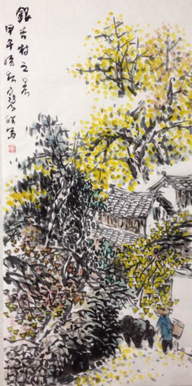 80年代初期,寇子皓籍由《昆明四青年书画展》崭露头角,并陆续在各类书画大赛中获奖,作品也争相被单位、企业和个人收藏。2013年,作为云南唯一一位受邀的书画家,寇子皓带着作品《银村之秋》远赴美国参展。回忆起《银杏村之秋》的创作过程,寇子皓满是唏嘘:“接到邀请后我就开始创作,却一直得不到满意的作品,一度很是灰心。那副作品我足足酝酿了3个月,结果有天突然来了灵感,半小时就画了出来。完成后我知道,就是它了。”