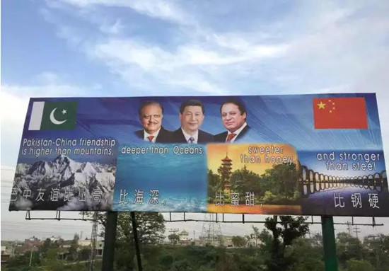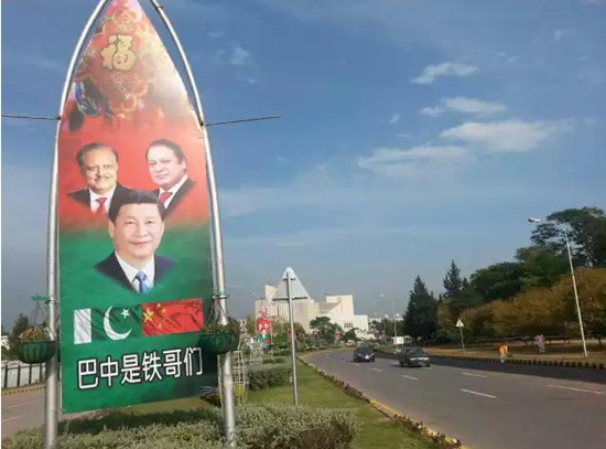 “巴中是铁哥们”,这幅宣传画有点意思。还有一幅写着“巴中友谊比山高、比海深、比蜜甜”,这个嘛,习主席在巴媒体发表署名文章时也谈过。但三“比”之后还有一“比”,确实很有意思。