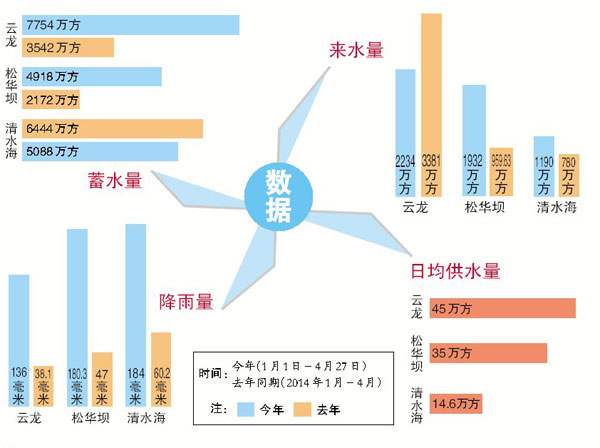 据了解,进入旱季以来云龙水库降雨稀少,4月中上旬每日平均径流5万方,水位单日最大下降5厘米,库容每天减少40万方左右。截至4月21日,库容由年初10241万方减少至7653万方,水位下降4.1米。