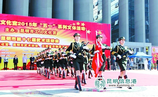 昆明市工人文化宫举行升国旗仪式 女子仪仗队亮相