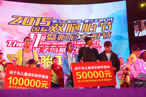 5月1日晚8点30分,由昆明送子鸟医院赞助,墨江双胞协会、云南广电传媒主办,昆明送子鸟医院、中国·墨江国际双胞小镇承办的第十一届墨江北回归线·送子鸟基金公益行开幕式晚会在墨江县体育馆举行。墨江国际双胞协会秘书长王东平、云南广电集团的梁峰、昆明送子鸟医院院长冯俊荣以及各位领导、媒体代表莅临并观看了晚会。