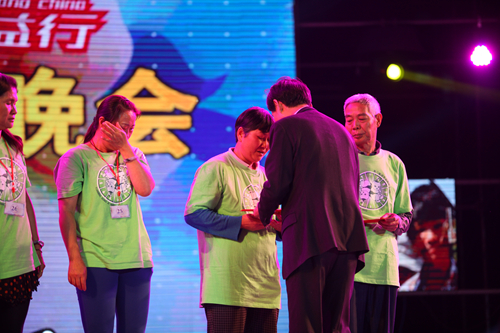 在爱心圆梦结束以后,一个有关于“失独家庭”的短片再次引发现场观众对这一特殊人群的关注。他们的出现让更多的人意识到自己的生命不仅关乎自己,更关乎家人的未来。在问及他们有什么心愿时,他们的回答深深触动在场每一位观众。“我想要人多陪陪我,和我说说话”,其中一位失独家庭说道。同样在听到这里,台上的“失独家庭”内心再一次被唤起对孩子的想念,纷纷抱着其他几位同样是失去孩子的父母痛哭,冯院长上前安慰这些不幸的家庭,为他们送上了一份红包祝福。