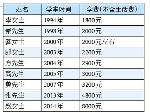 采访过程中,记者调查了一下周围朋友及同事们的学车“历史”,也深深感觉到了历年学费的“阶梯式变化”,让我们再来看看这些拿到驾照的“前辈”们,他们以前的学车费又是多少呢?想必您心中也会感慨万千呢!