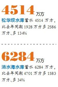 松华坝、清水海两大水库蓄水量虽远高于去年同期,但目前仍是“入不敷出”。截至昨日,松华坝水库蓄水4514万方,比去年同期1928万方多2586万方、多134%,但与4月21日的5035万方相比,减少了521万方。清水海水库蓄水6284万方,比去年同期4701万方多1583万方、多34%,与4月21日的6459万方相比,减少了175万方。