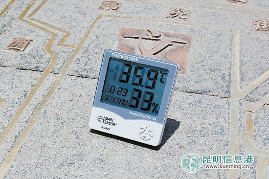 昆明信息港综合整理 昆明到底有多热?26日中午,记者用温度计选了5个地点测了测:有空调的冷饮店26.7℃,丹霞路树荫下35.7℃,烈日的南屏街世纪广场35.9℃,市民有些疑惑:“看天气预报,温度没这么高啊!”对此,气象专家解释:本周昆明以晴到多云天气为主,26日最高温28.4℃(16时测得),温度器暴晒测得气温会偏高,下周一,主城区将出现一次小到中雨局部大雨的天气过程,气温将会有所下降。