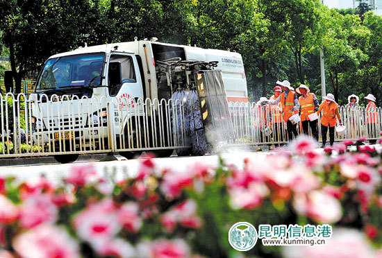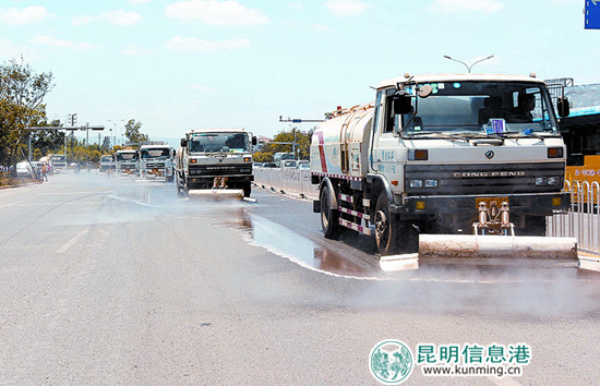 从5月20日起,官渡区就将场馆周边主要道路的全面清洗频率调整到两天一次,会展期间将再提高为每天一次。同时,全区每天将有40台清洗车上路作业,对全区23条主要道路以每周两次的频率的进行全面冲洗。