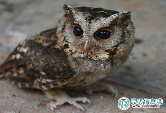 昆明信息港讯 记者邹美连 近日,晋宁县爱鸟志愿者李继明和朋友到晋宁县晋城镇的一个农家乐过周末,刚走进农家乐,大家都忙着看风景,李继明却被树上挂着的一个鸟笼吸引住了,仔细看去,里面关着一只小小的猫头鹰。