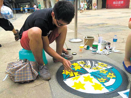 昆明也玩井盖涂鸦 呼吁市民关注城市文明