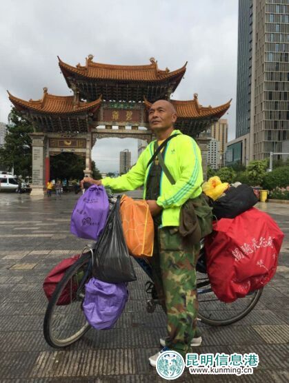 昆明信息港讯 记者李红鸾 为纪念中国工农红军长征胜利80周年,河南焦作市退休工人田玉岭独自一人骑自行车重走长征路,近日到达昆明。6月22日上午,他又从昆明市金马碧鸡坊出发,继续踏上征程。出发前,云南晟成扶贫助老基金会代表、昆明市众多骑行爱好者及部分媒体记者前来为田玉岭壮行。