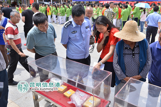 昆明信息港讯 记者合宇聪 又到一年“国际禁毒日”,26日下午,昆明市文化广播电视体育局联合昆明市公安局禁毒支队在新亚洲体育城举行昆明市文化娱乐场所禁毒防艾宣传教育主题活动,今年的主题为“依法禁毒,遏制艾滋、构建和谐”,据悉,这是昆明市首次以新媒体模式对文化娱乐场所禁毒防艾进行宣传。