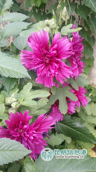 重瓣蜀葵是金殿名胜区今年新引进的花卉品种 记者杨雁/摄