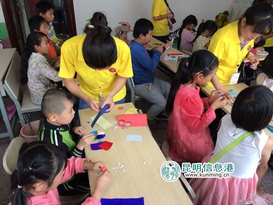 “教他们做手工和画画,能发挥我们的特长。在教他们的过程中,我能感受到他们对于美术和手工的喜爱,感觉他们参与性非常高,觉得看到他们很快乐,我们也很快乐”,云南财经大学志愿者李欣蔚告诉记者。