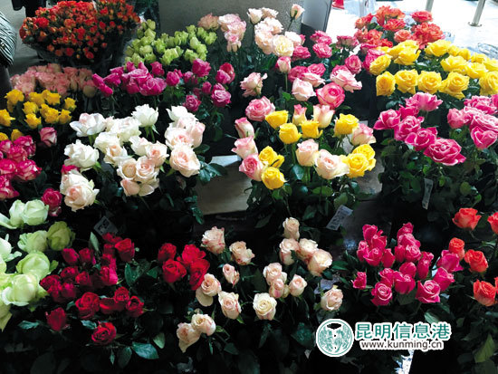 这几天玫瑰花上市量比前几天多,但价格连连上涨。红玫瑰从平时的2元/把(10枝)涨至2.5元/把,涨幅达25%;蓝色妖姬从8元/把(20枝)涨至19元/把,涨幅达138%;香槟色、紫色、粉色、黄色、白色等玫瑰花从2元/把(20枝)上涨至2.5元/把,涨幅达25%。情人节外省老板到现场来抢货的很多,把花价抢高了。越往后价格还会涨。”在市场做了3年生意的花商邱光荣说,市场里大部分花也都涨价,配花比玫瑰花涨得还厉害。满天星已从10元/公斤涨至50元/公斤,涨幅达400%。那么高的价格,市场里几乎没人卖现货,都只接受预订。