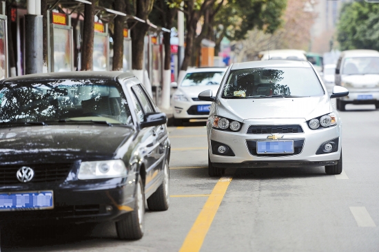 为了省停车费直接停在国资停车位外 记者翟剑/摄