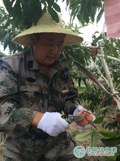 李勇亲自到基地采摘雪桃