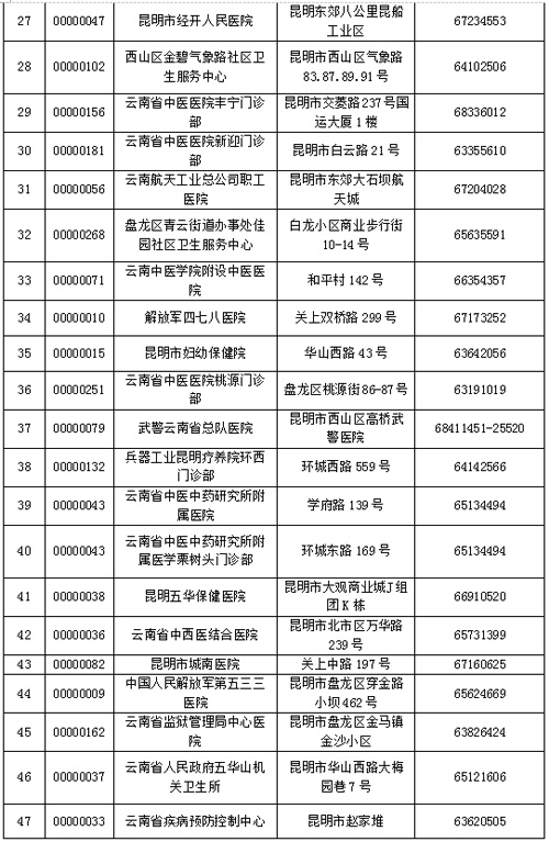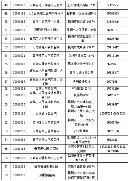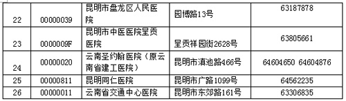 昆明地区68家门诊定点医疗机构和26家住院定点医疗机构名单