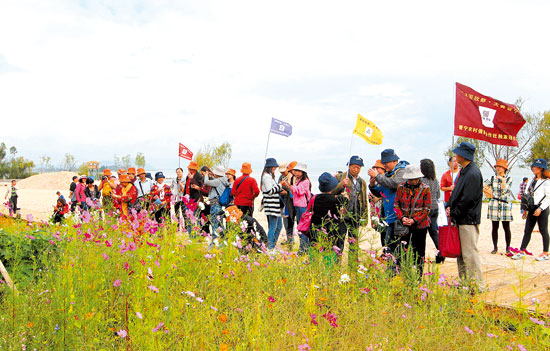 晋宁南滇池国家湿地公园盛开的鲜花吸引了活动参与者们驻足 记者李海曦/摄