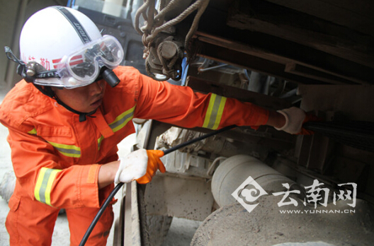 货车司机维修车辆意外被压 文山特勤铁军紧急营救