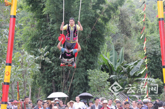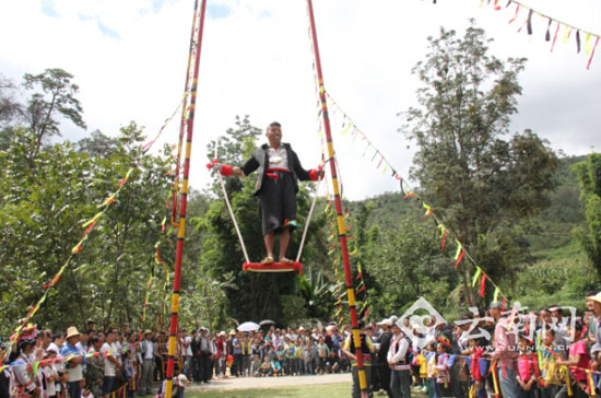波罗村民族体育竞技场单人秋千比赛